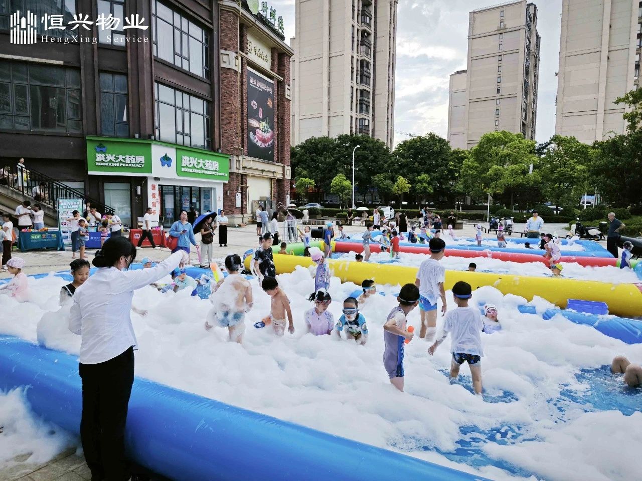 In order to give children a happy holiday, Greenland Yuecheng Property Service Center has carefully created a "Water Park · Happy Bubble Party" carnival party. Community owners and children participate together and enjoy childhood fun together. In order to ensure the safety of the event, the order personnel were on duty throughout the whole process. The customer service personnel prepared watermelon, hot dogs, Rice-meat dumplings, popcorn, mung bean soup, Snow fungus soup and other delicacies, and the scene was full of laughter.